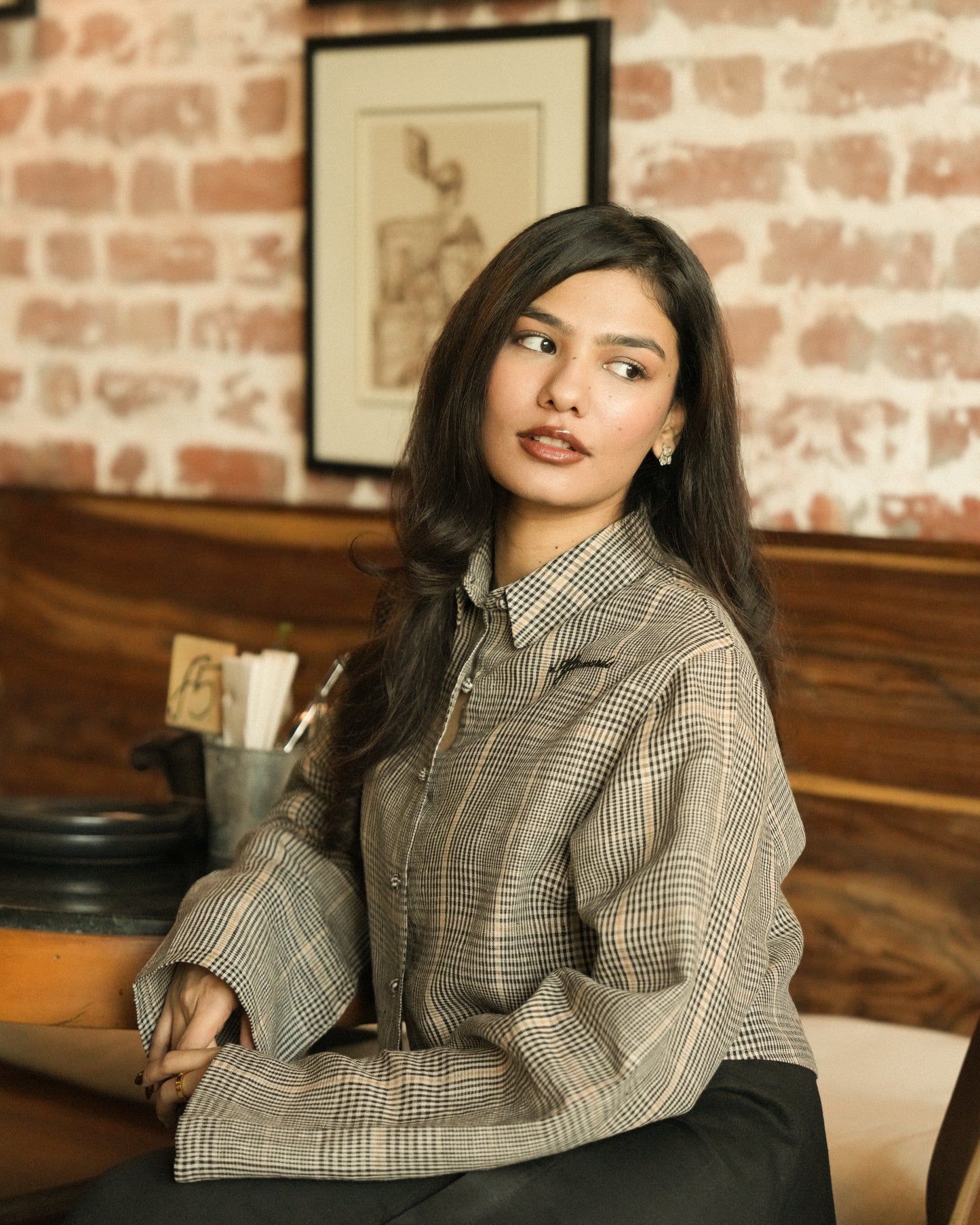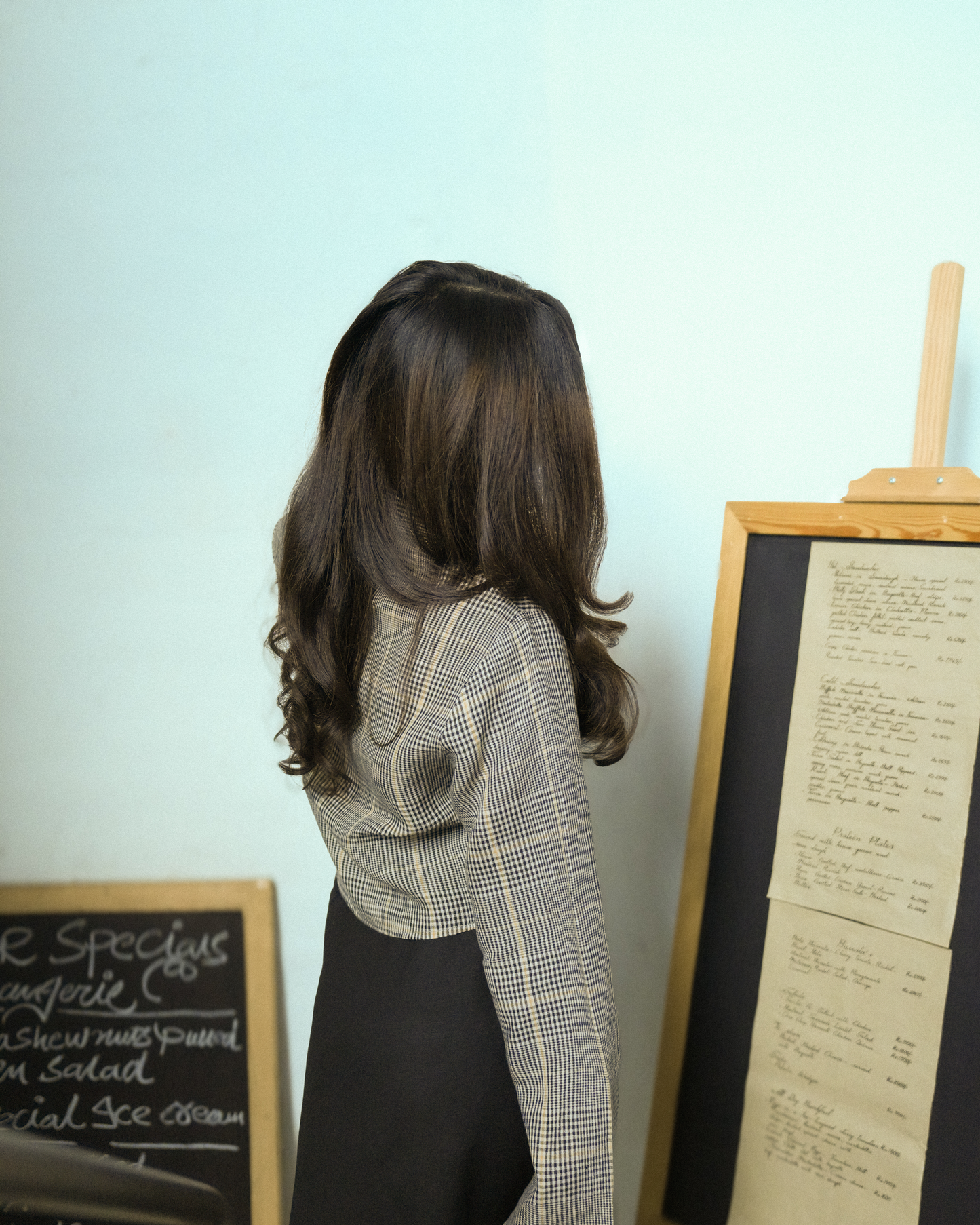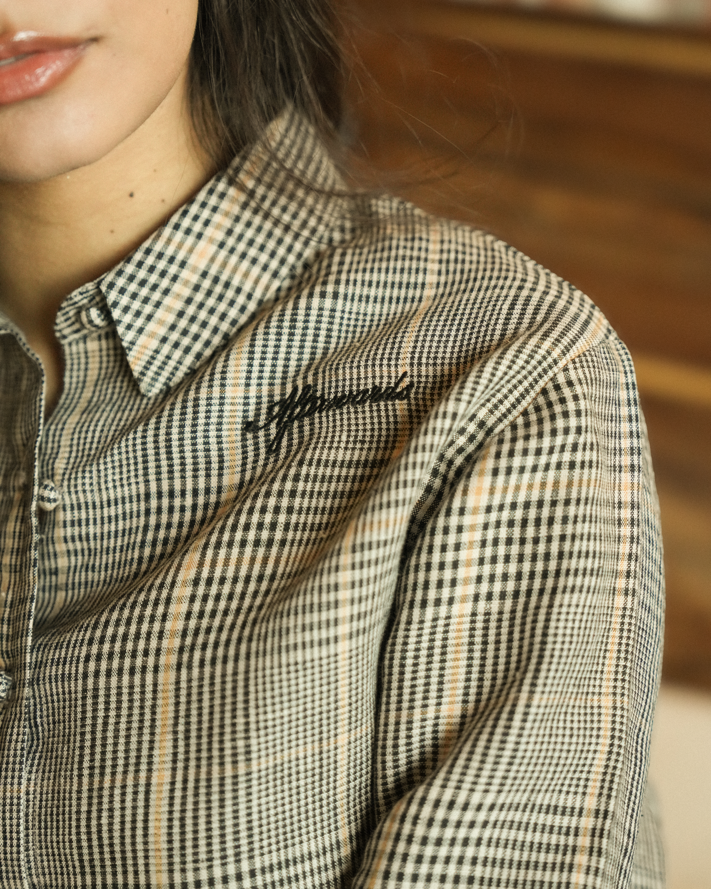 A two-piece set of skirt & kimono style top + Material: pinstripe linen fabric with wool blend + Top is adjustable from the chest to torso area with string mechanism on the side + Skirt waistband is secured with a hook & zip with elastic on the back for up to 2 inches of stretch + Skirt has a back slit to provide ease in movement + Skirt has medium depth pockets