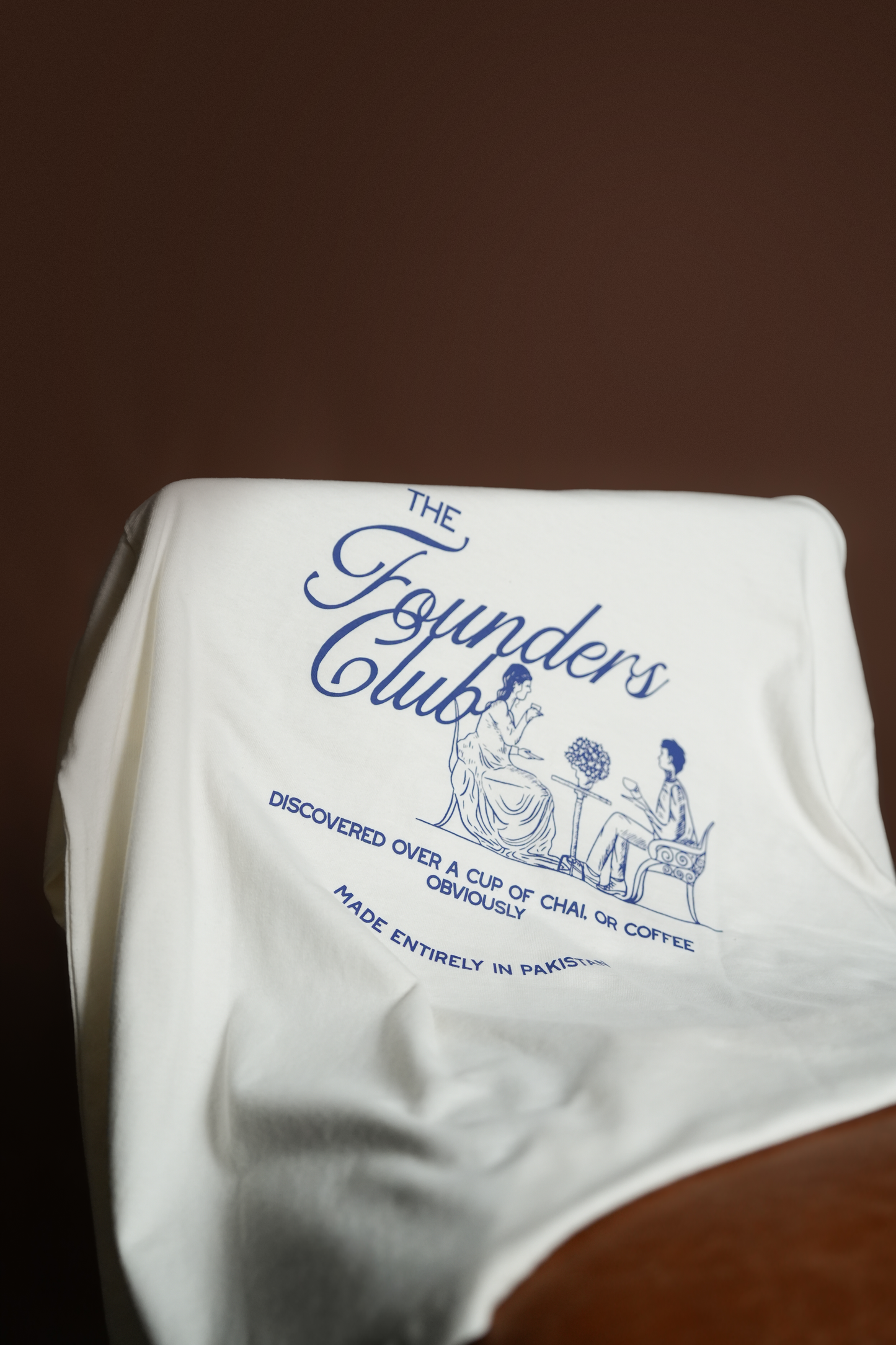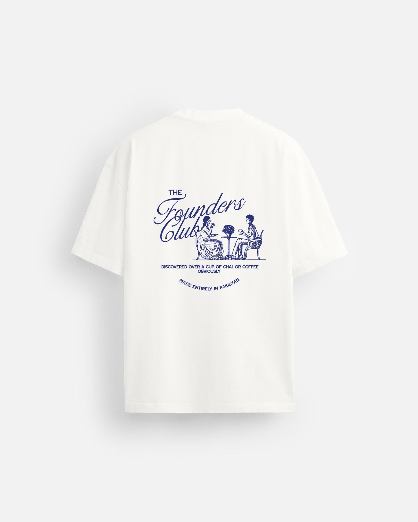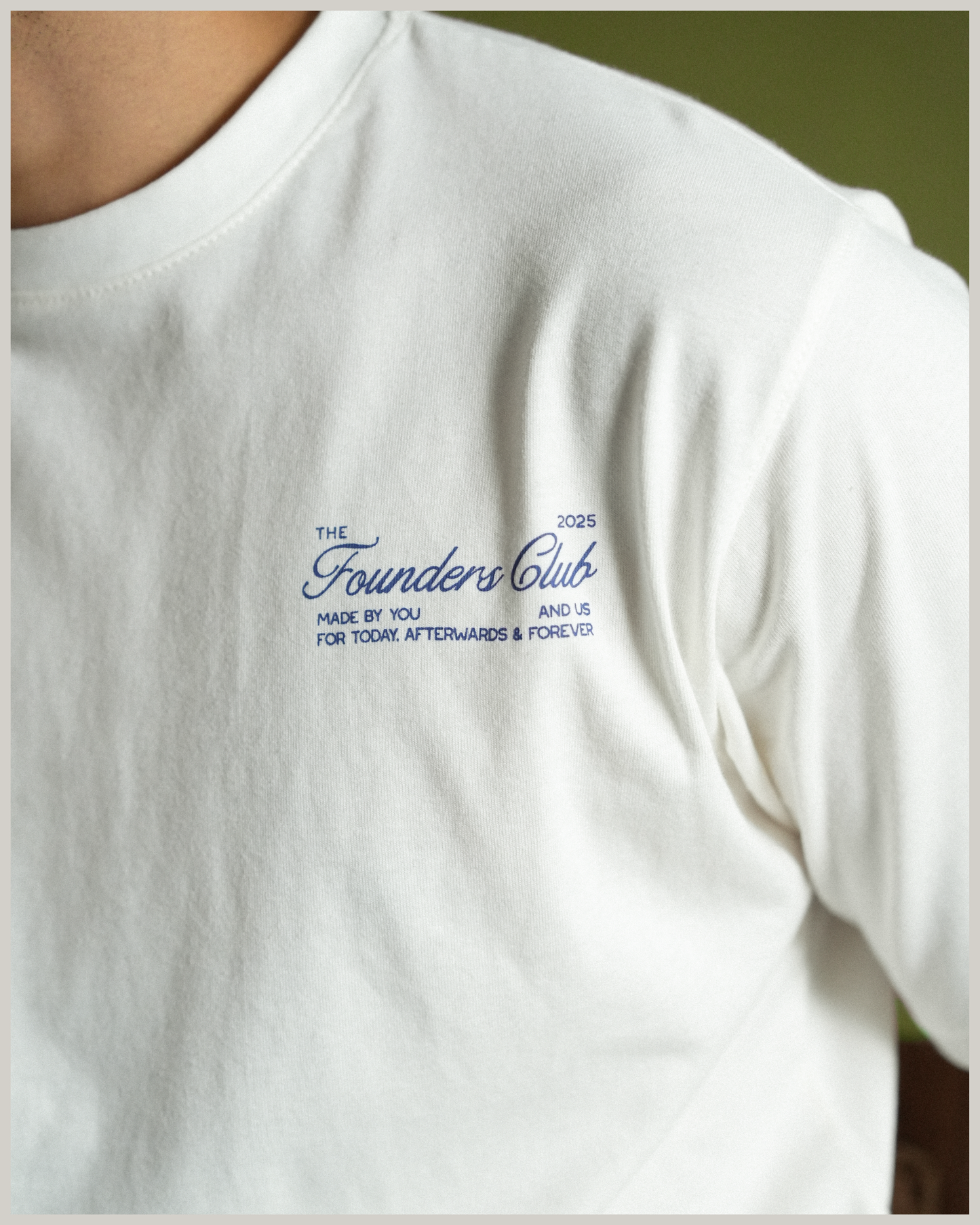 + Oversized T-shirt in an off-white colour + Unisex garment + Front text & back design in 'screen print' technique in navy blue + 170 GSM cotton-blend fabric + Summer-friendly cloth + Oversized fit with drop shoulders + Size chart provided within images