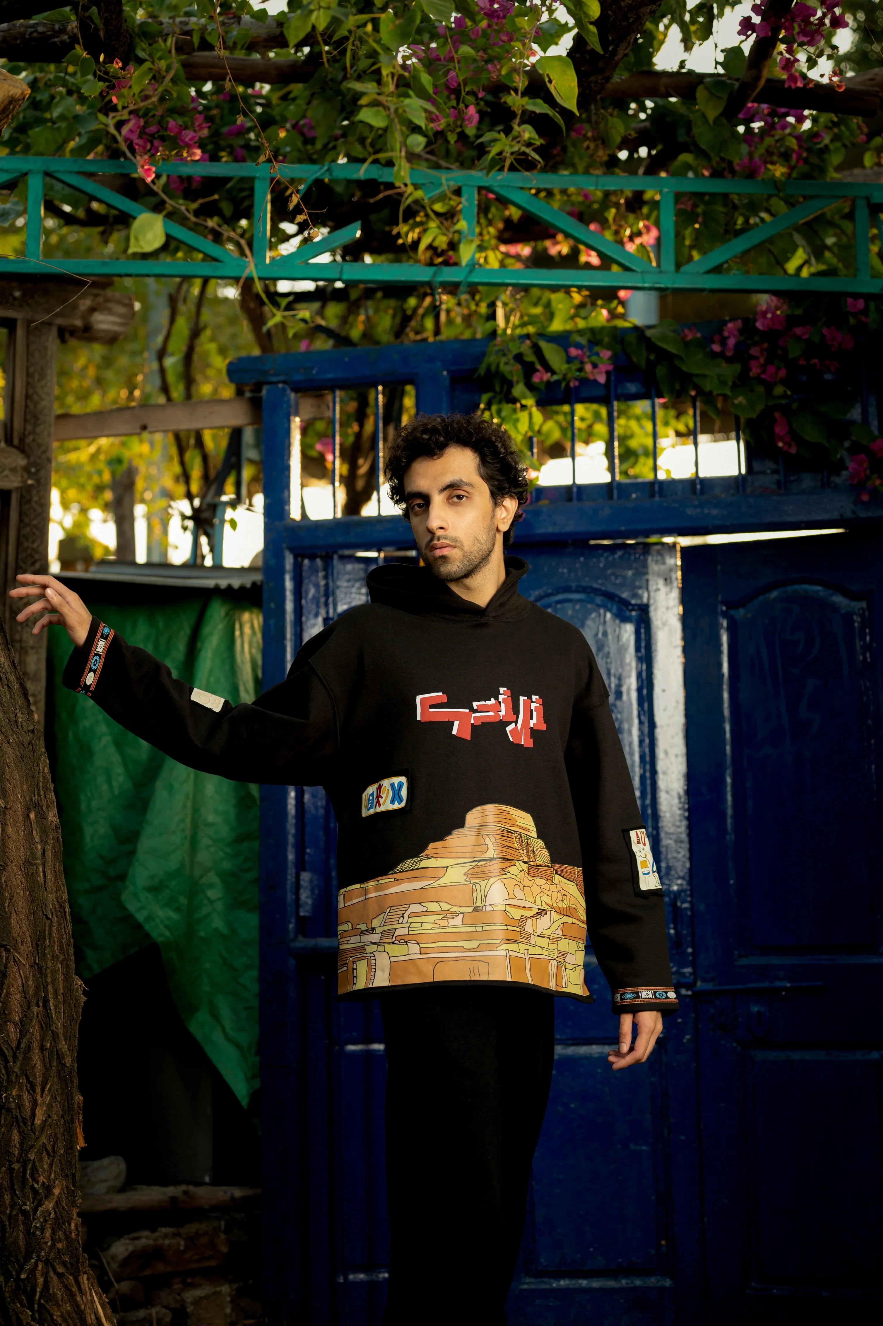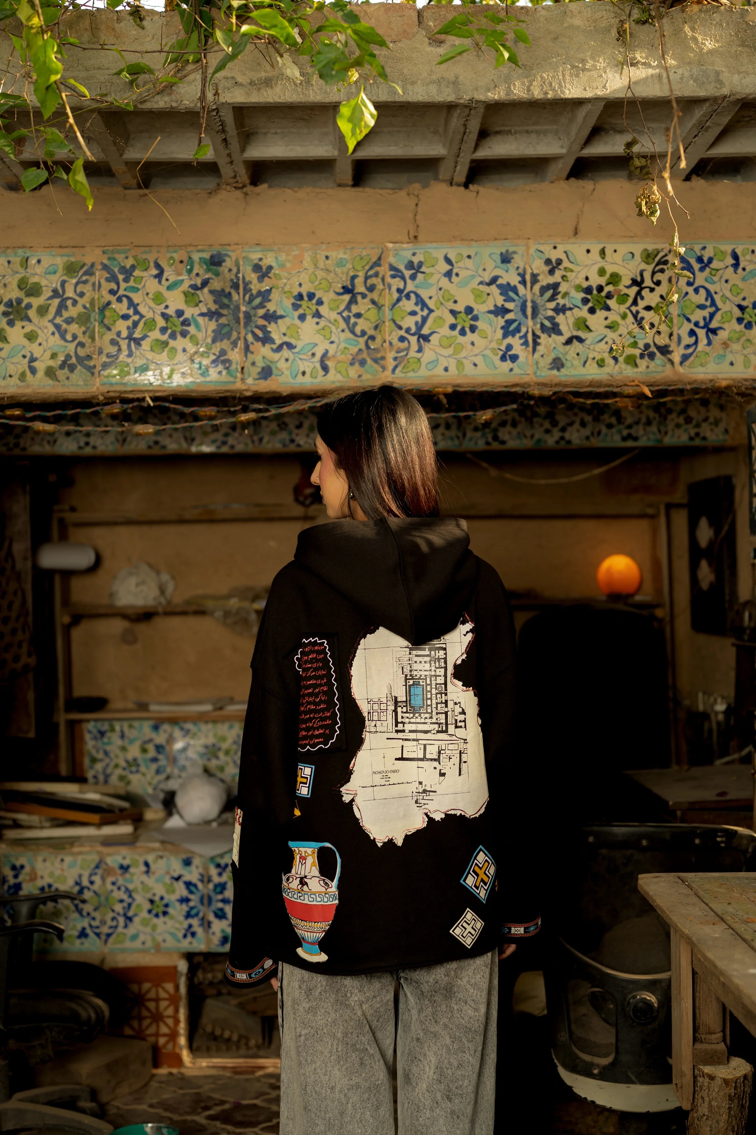 The sleeves have Mohenjo-Daro patterns along the borders, created with screen printing for a subtle yet striking detail.