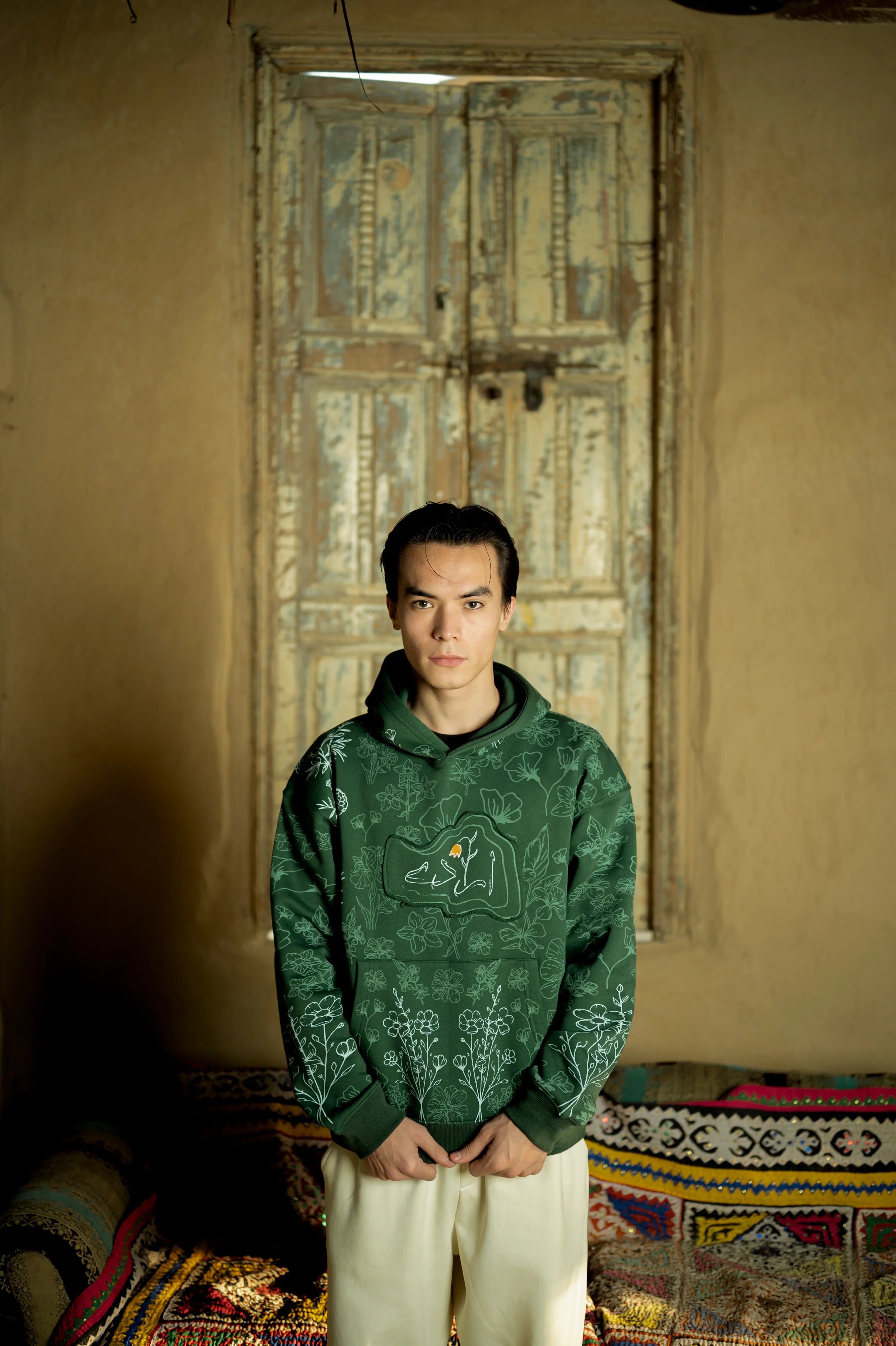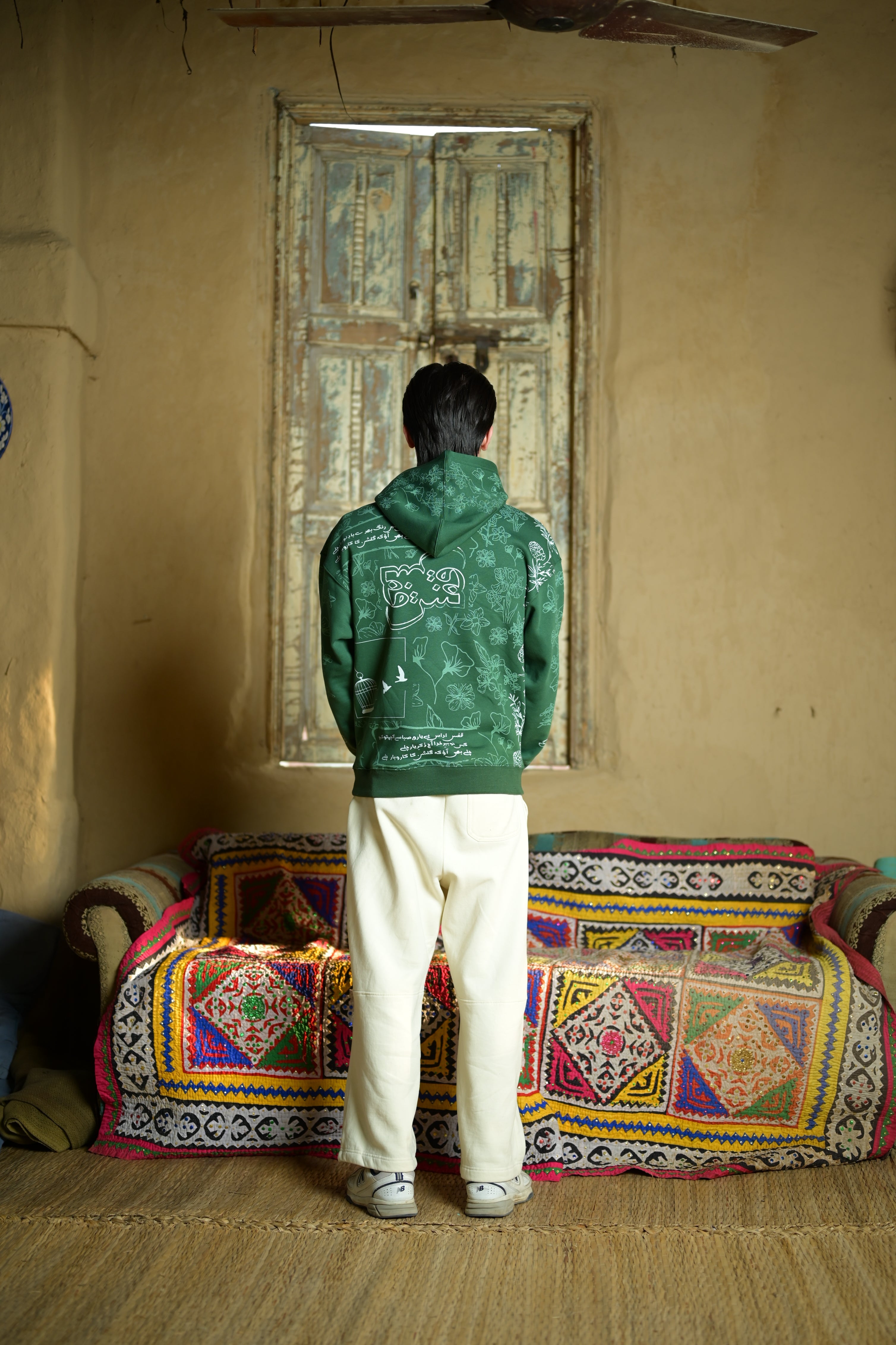 This hoodie is inspired by the timeless Urdu ghazal, whose words explore themes of captivity, yearning, and spiritual freedom.