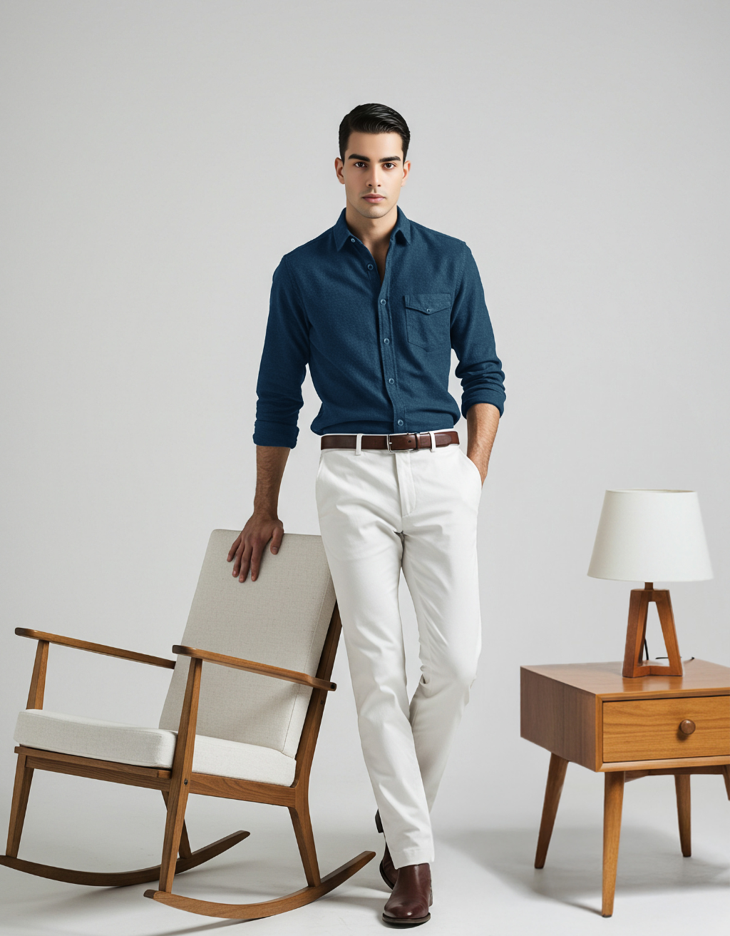 Easygoing and versatile. This navy cotton shirt features a button-down front and a flap chest pocket, making it a go-to piece for casual days.