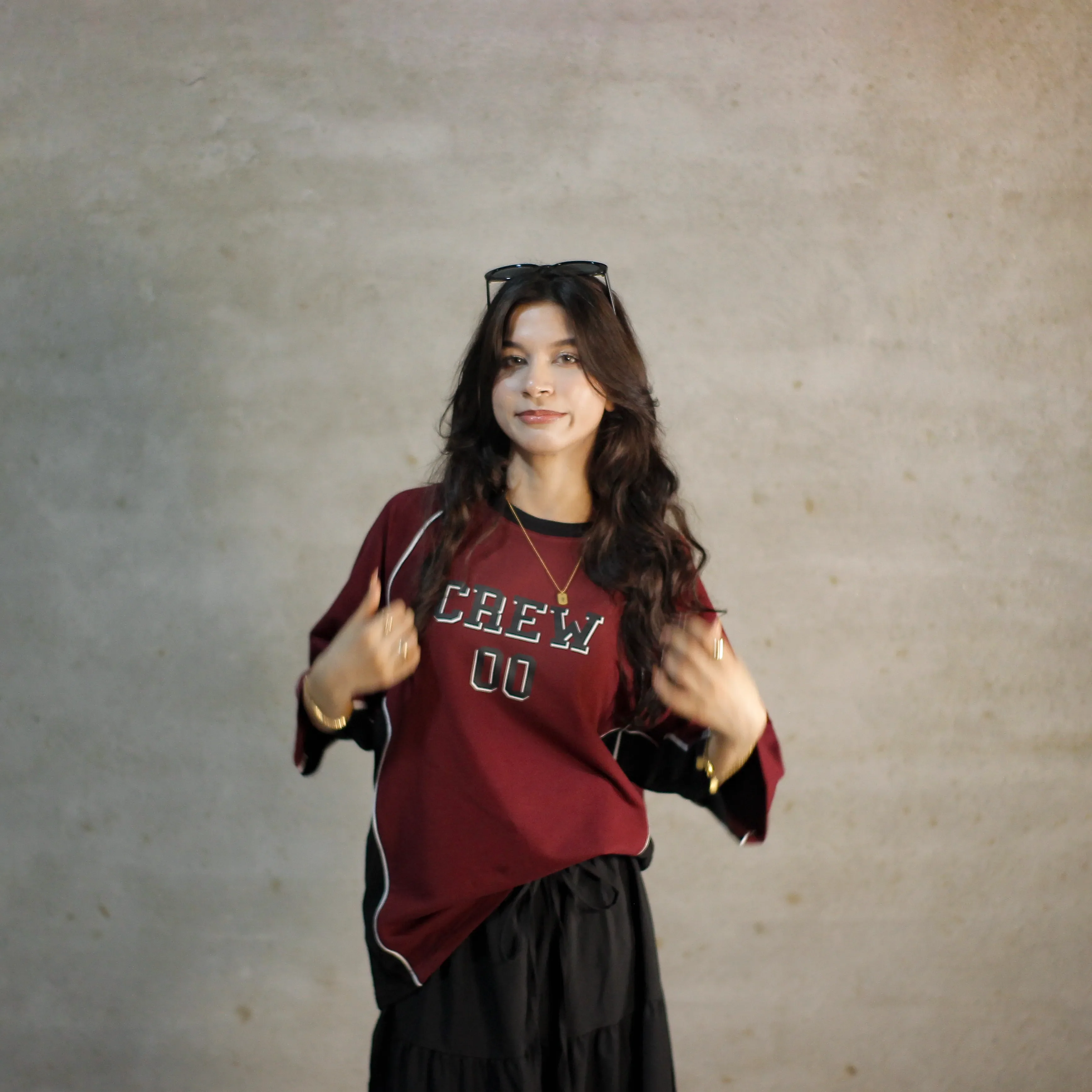 Varsity meets speedwear in this paneled cotton tee. Contrast piping and “CREW 00” hit bring early-2000s track energy. Built for clean structure and standout presence.
