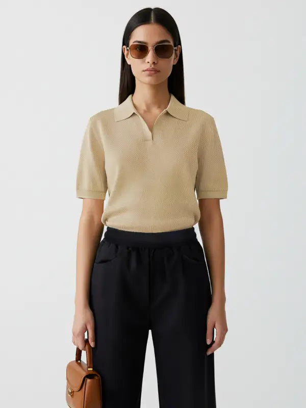 Stay cool and stylish with the SummerSkin Polo. Crafted from breathable pique fabric, this skin-toned Johnny collar polo is perfect for summer and mid-season wear. The short sleeves provide added comfort and a relaxed fit for any casual outing.